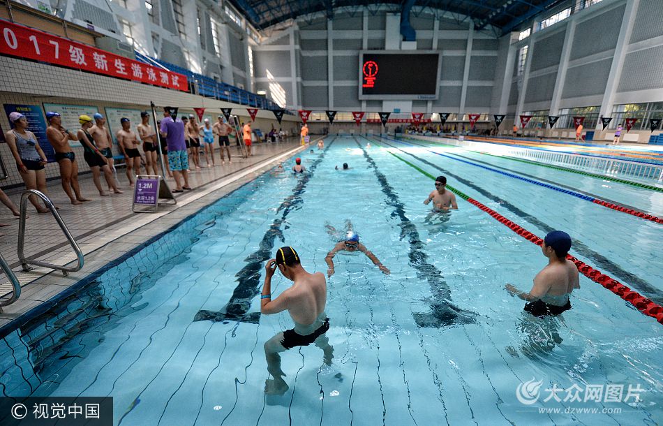 軍訓(xùn)結(jié)束后,昨天開(kāi)始,清華大學(xué)2017級(jí)新生又迎來(lái)新一輪考驗(yàn):游泳測(cè)試。今年初,清華重啟90多年前的老校規(guī)“不會(huì)游泳不能畢業(yè)”(身體等特殊情況除外),因此新生入學(xué)后都要參加游泳測(cè)試。昨天,445名同學(xué)參加了首場(chǎng)測(cè)試,因?yàn)槎际亲栽笀?bào)名,合格率高達(dá)91.5%。但據(jù)清華體育部問(wèn)卷調(diào)查,全體新生不會(huì)游泳的約占半數(shù)。