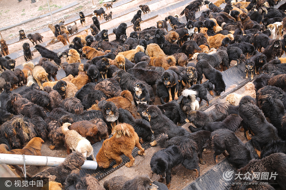 2017年8月20日,青海囊謙縣,在囊謙毛莊鄉(xiāng)流浪狗收容所內(nèi)等待喂食的流浪藏狗。