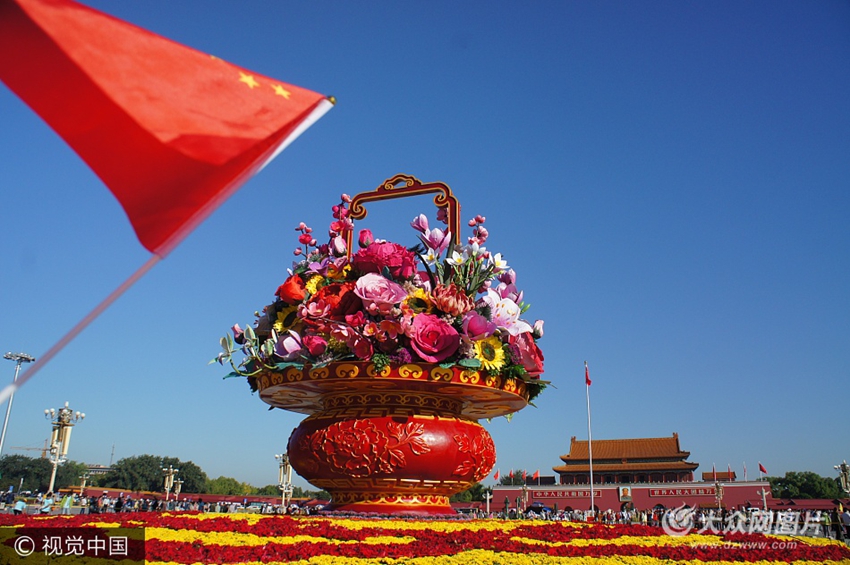 2015年09月25日,北京,天安門(mén)廣場(chǎng)中心花壇正式搭建完成。