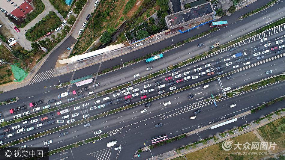 2017年10月3日,山東省濟(jì)南市,在市區(qū)南大門的英雄山立交橋南下橋口處,從東、西、北三個方向行駛而來的車輛匯聚于此,排起百米長隊緩慢通行,通過路口需要等待2-3個信號燈。國慶長假第三天,雖然天空飄著小雨,但市民外出旅游的興致未減,自駕前往南部山區(qū)游玩的車輛增多,英雄山立交橋和省道103線車流量大幅增加,部分路段出現(xiàn)短時擁堵。
