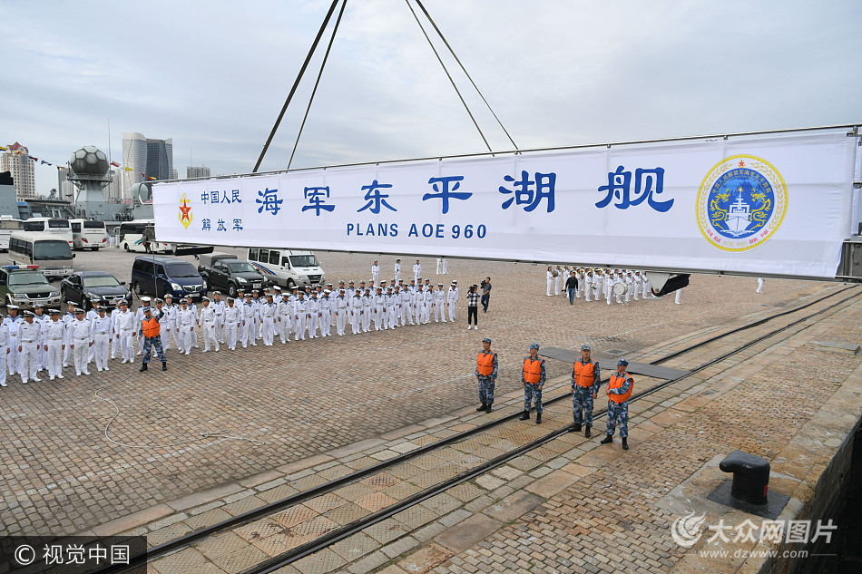 2017年10月3日,青島,海軍東平湖號靠港。當日,中國海軍艦艇編隊完成中俄“海上聯(lián)合-2017”第二階段軍事演習任務,順利返回青島某軍港。據(jù)了解,此次中方參演艦艇編隊由導彈驅逐艦石家莊艦、導彈護衛(wèi)艦大慶艦、綜合補給艦東平湖艦和援潛救生船長島船組成。編隊9月13日啟航,先后航經(jīng)黃海、東海、日本海、鄂霍次克海、西北太平洋等海域,穿越對馬、宗谷等海峽,總航程近5000海里。