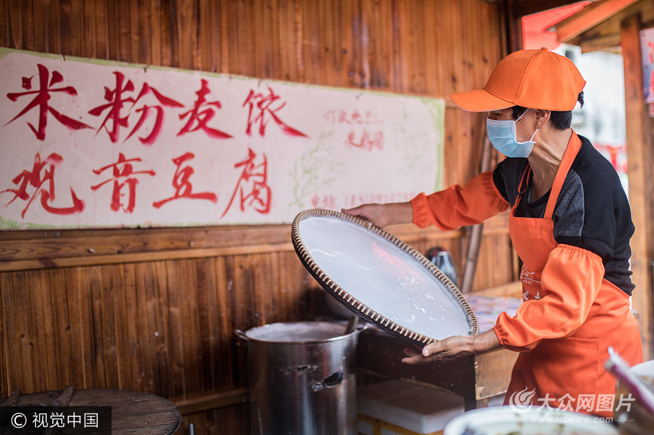 大眾網(wǎng)10月7日訊 這幾年,鄉(xiāng)村旅游興起,許多城里人樂(lè)忠于前往山村里游山玩水。浙江省浦江縣虞宅鄉(xiāng)新光村廿玖間里,這兩年因?yàn)猷l(xiāng)村旅游興起,每天都能吸引很多游客。今年黃金周,這里車(chē)水馬龍,游客爆棚。鄉(xiāng)村旅游興起也讓一些有手藝有頭腦的農(nóng)民在家門(mén)口就賺到了錢(qián)。圖為該村村民徐大媽正在制作當(dāng)?shù)貍鹘y(tǒng)小吃“麥衣”,在黃金周這幾天,每天能賣(mài)出好幾百個(gè),一天下來(lái)能賺上千元。