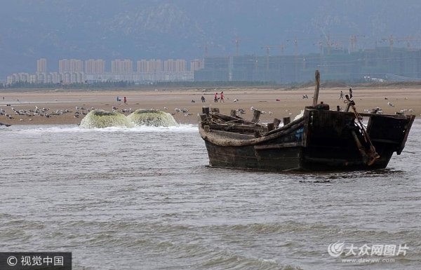 青島海濱落大潮 靈山灣現(xiàn)“蘑菇泉”