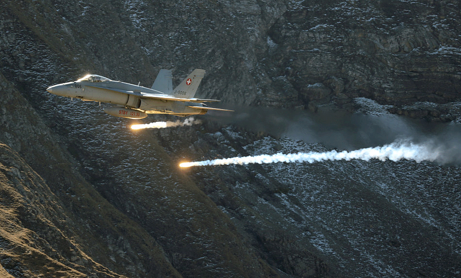 當?shù)貢r間2017年10月12日,瑞士埃克薩爾普,瑞士空軍飛機在伯爾尼高地上空進行飛行表演。