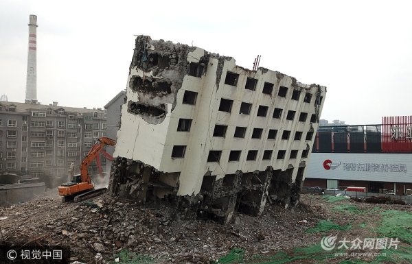 濟(jì)南一酒店拆除成“樓堅(jiān)強(qiáng)” 傾斜30°仍不倒塌