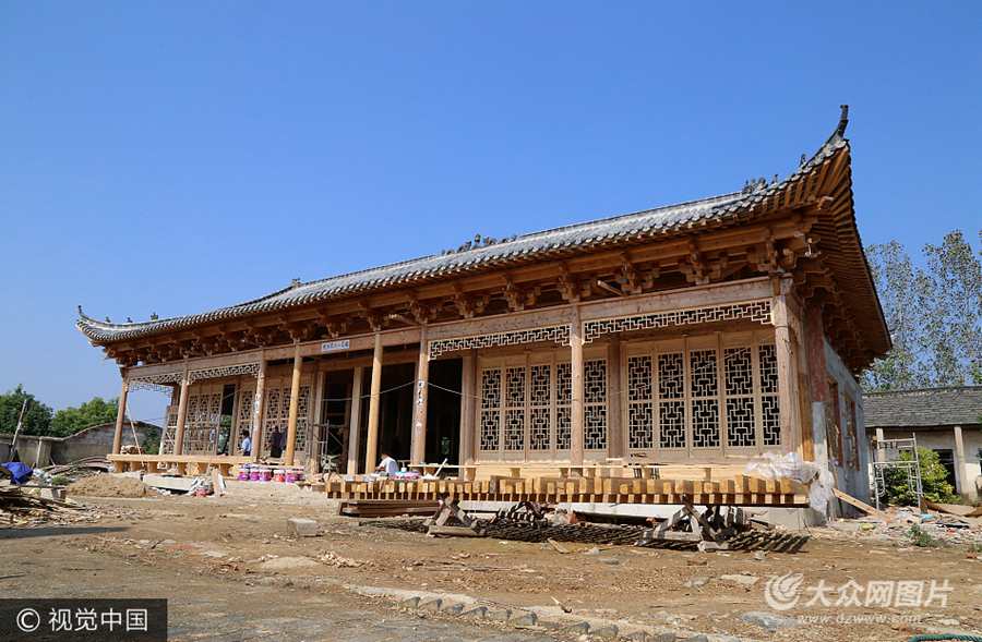 2017年10月8日,在安徽巢湖市柘皋鎮(zhèn)吳昌村,一棟古代宮殿造型的民宅正在建造中,外觀上已基本成型。宮殿分上下兩層,共10間房,總面積400多平米。據(jù)建造者家人和工匠介紹,建造費(fèi)加后期裝修費(fèi),至少需要花費(fèi)300萬(wàn)元。