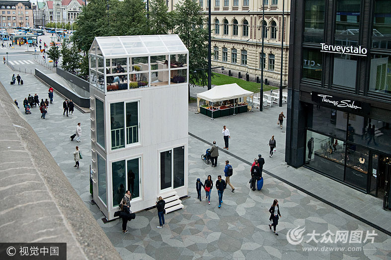 當(dāng)?shù)貢r(shí)間2017年10月13日,芬蘭赫爾辛基,隨著世界各地城市房屋擁擠日趨嚴(yán)重,有些人認(rèn)為把住房面積縮小會(huì)是一個(gè)解決方案,下面這款由芬蘭建筑師 Marco Casagrande設(shè)計(jì)的房子Tikku就是一個(gè)典型的緊湊型房屋。近日,Tikku就亮相在赫爾辛基街頭,引來(lái)諸多游人前往體驗(yàn)參觀。它的占地大小僅為2.5 x 5米,僅僅是一輛普通汽車的大小。Tikku在芬蘭語(yǔ)中意為“長(zhǎng)棍”,是 Marco 為2017年赫爾辛基而打造的作品,總占地面積為37.5平方米,共有三層。Tikku所用的是太陽(yáng)能發(fā)電,走進(jìn)里面,可以看到一層為工作室,二層是臥室,三層則有一個(gè)綠植小院和休息區(qū)。Tikku的售價(jià)為41500美元(約合27萬(wàn)元),不包含運(yùn)送費(fèi)。