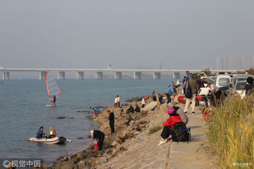 2017年10月21日,市民在青島膠州灣畔休閑度周末。當(dāng)日是周六,許多市民來(lái)到膠州灣畔游玩,有人開(kāi)著房車(chē)來(lái)釣魚(yú),帶著孩子來(lái)趕海,或者親朋好友同事帶齊各種美食美酒前來(lái)燒烤聚餐喝酒,樂(lè)趣無(wú)窮。趕海垂釣各種海鮮收獲頗豐,海鱸魚(yú)八帶海蠣子螃蟹蝦虎等饞得人流口水。