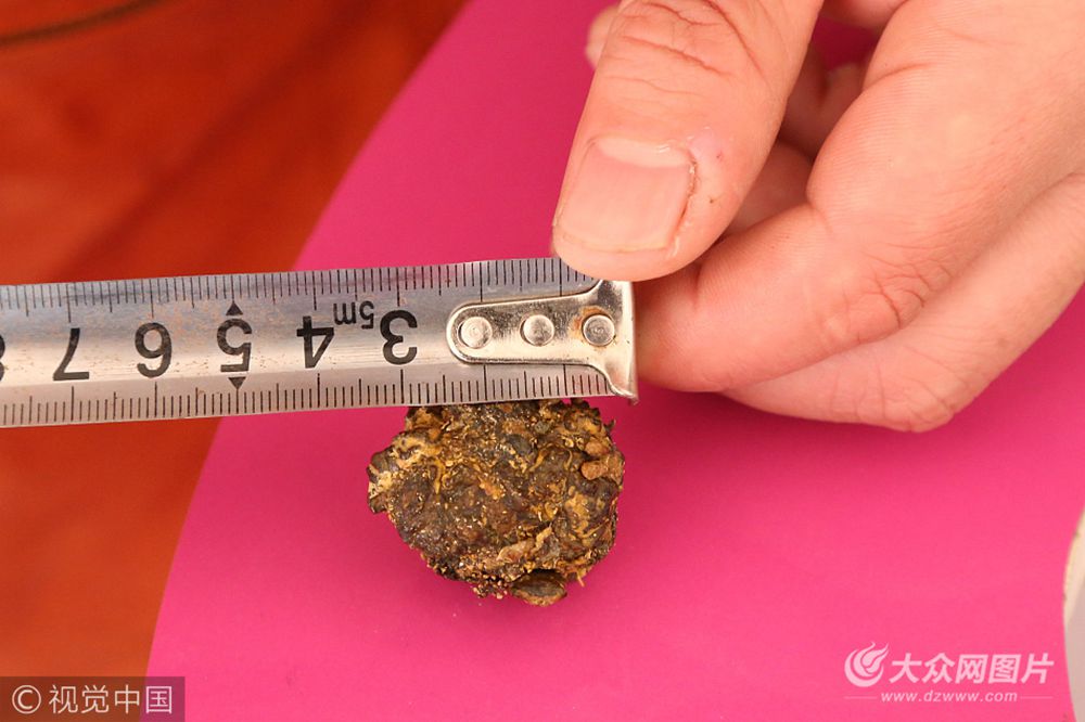 孫建國(guó)在莒縣陵陽(yáng)鎮(zhèn)趙家葛湖村開(kāi)了一家如意全羊館,他在殺羊時(shí)意外驚喜,發(fā)現(xiàn)了這顆“怪石”。“怪石”表面為深褐色,十分堅(jiān)硬,散發(fā)出濃濃的膻味,測(cè)量直徑約為3厘米。