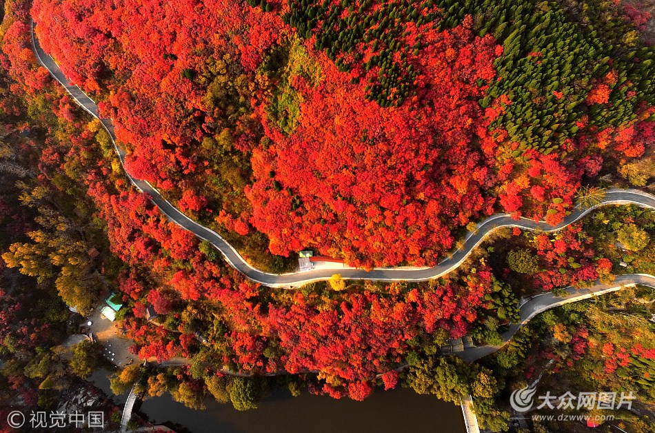 2017年10月30日,濟南南部山區(qū)紅葉谷的4000多畝黃櫨紅遍,形成全國罕見的巨型紅葉欣賞區(qū)。 紅葉谷生態(tài)旅游區(qū)位于山東省濟南市歷城區(qū)仲宮鎮(zhèn)錦繡川南,距離濟南市區(qū)33公里,南依五岳之首泰山。由于紅葉谷所處的南部山區(qū)是濟南泉水的主要涵養(yǎng)補給地且景區(qū)海拔在500米在左右,平均氣溫比市區(qū)低5攝氏度左右,山地小氣候較為明顯,景區(qū)的植被覆蓋率高達97%,主要是野生黃櫨,到深秋徹底變紅,景色極為壯觀。