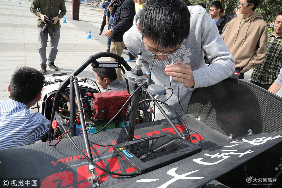 11月8日,一支由近百名東南大學在校大學生組成的東南大學方程式車隊在該校九龍湖校區(qū)舉行出征2017全國大學生方程式汽車大賽儀式,燃油賽車、電動賽車、無人駕駛賽車一起揭開“紅蓋頭”,并在賽道上進行試車。