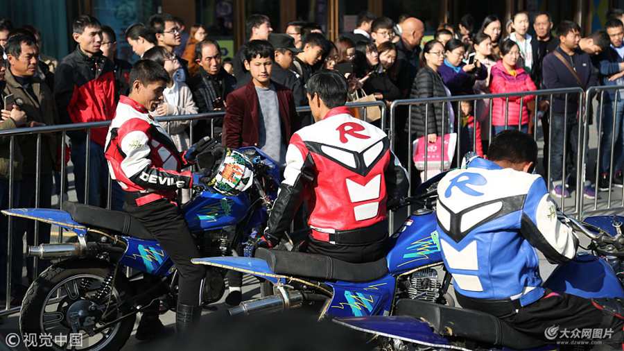 2017年11月11日,在濟(jì)南高新區(qū)街頭,四名男子駕駛摩托車(chē)關(guān)在鐵籠里瘋狂倒轉(zhuǎn),吸引眾多市民前來(lái)駐足觀望。