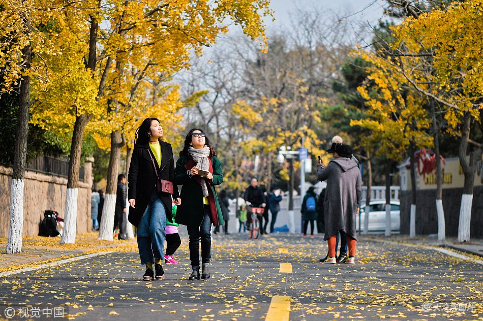 2017年11月21日,在山東省青島市八大關(guān)、中山公園景區(qū),初冬的園林仍停留在燦爛的童話世界,吸引了不少游客徜徉在秋冬之間,接受落葉的洗禮。