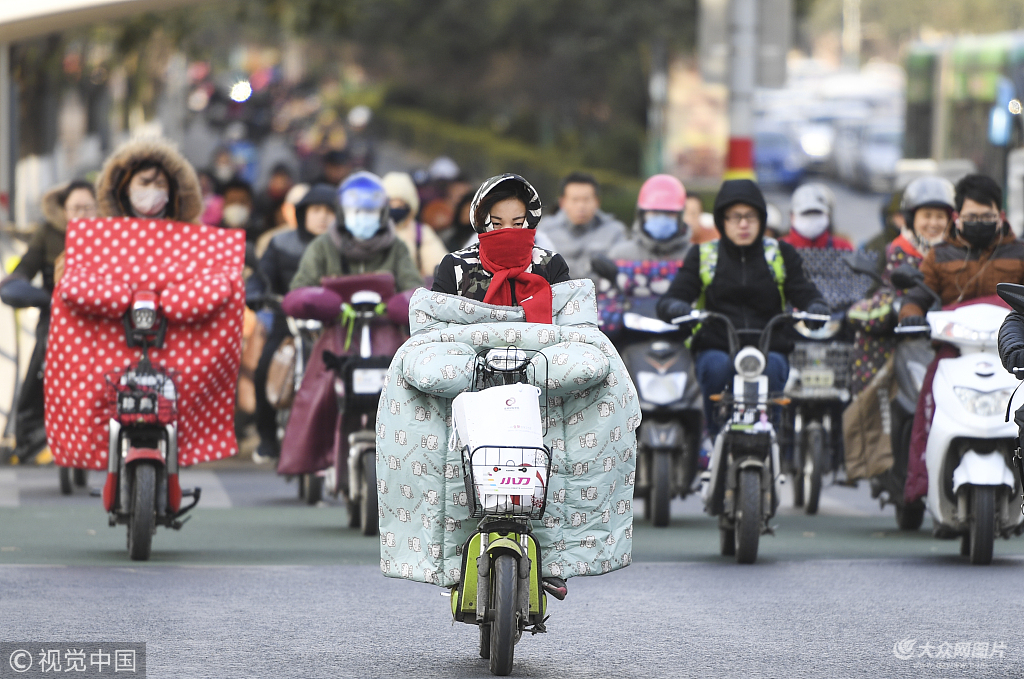 2017年11月29日,濟(jì)南市氣象臺繼續(xù)發(fā)布大風(fēng)藍(lán)色預(yù)警信號,民眾“捂裝”出行。受冷空氣影響,濟(jì)南氣溫持續(xù)走低,氣溫直降7℃至8℃,最低氣溫降至-3℃,開啟“冰凍模式”。 張勇(山東分社)/中新社/視覺中國