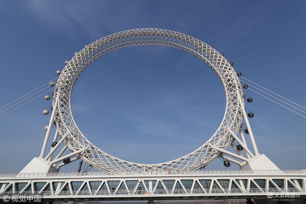 11月27日,位于渤海灣入海口的白浪河摩天輪正在山東省濰坊市進行亮化施工。白浪河摩天輪直徑達125米,總高度為145米,比享譽世界的“倫敦眼”還高出10米,被業(yè)界公認為世界最大的無軸式摩天輪。此前,在2013年底完工的江蘇常州“時來運轉”無軸式摩天輪高89米。