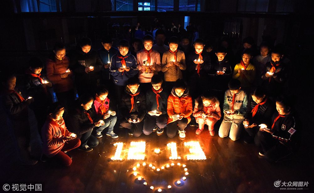 2017年12月12日晚,濟南,山東師大附小開展“為逝者緬懷 為生者祈! 和平燭光祭活動,為悼念南京大屠殺中30萬死難者。