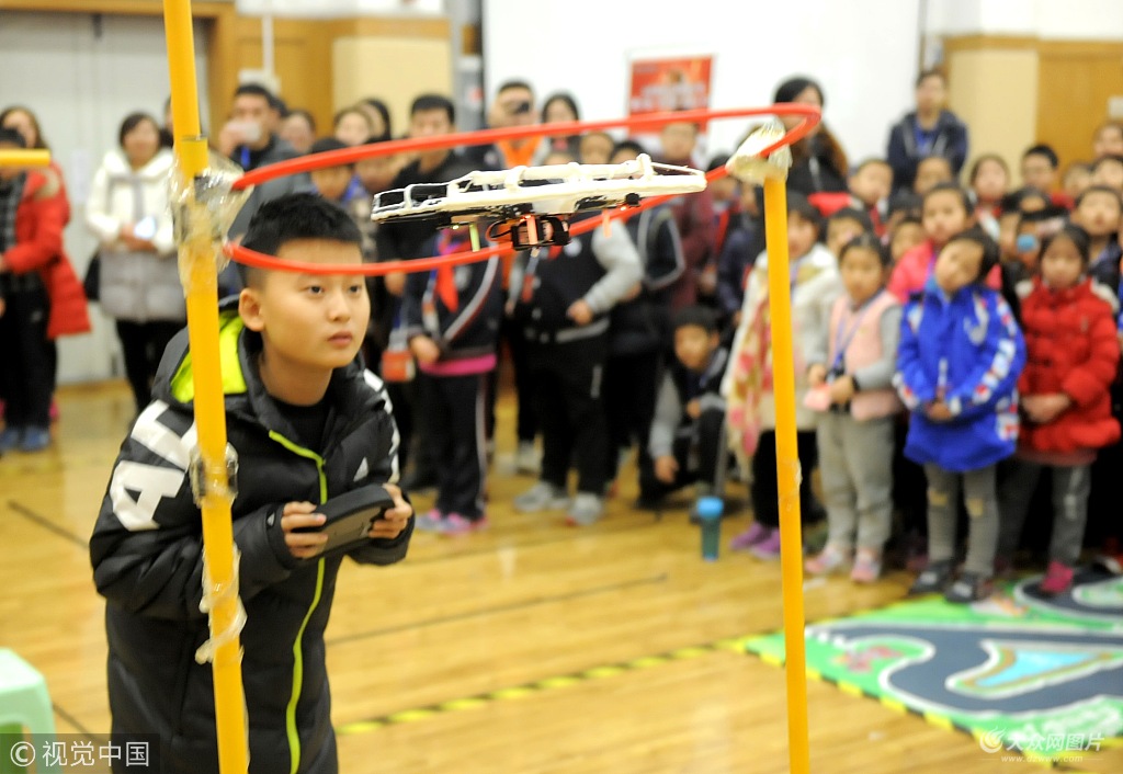 2017年12月15日下午,濟(jì)南,在山師附小本部校區(qū)體育館,師大附小第六屆 “校長(zhǎng)杯”機(jī)器人大賽在此舉行。附小學(xué)生全員參與,無人機(jī)展示表演、機(jī)器人拔河、創(chuàng)意編程、遙控機(jī)器人相撲、遙控機(jī)器人越野、單片機(jī)應(yīng)用設(shè)計(jì)大賽、遙控機(jī)器人搬運(yùn)、創(chuàng)客接力賽、橡皮筋手槍速射等多個(gè)比賽項(xiàng)目。參賽的機(jī)器人、無人機(jī)都是學(xué)生們親自動(dòng)手制作編程的。其中,六年級(jí)學(xué)生操控?zé)o人機(jī)熟練的轉(zhuǎn)圈、避障,贏得現(xiàn)場(chǎng)觀眾陣陣掌聲。