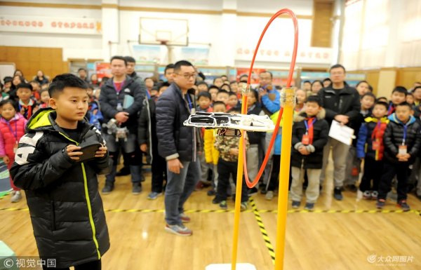 濟南:無人機鉆圈、機器人拔河 小學生科技節(jié)上展身手