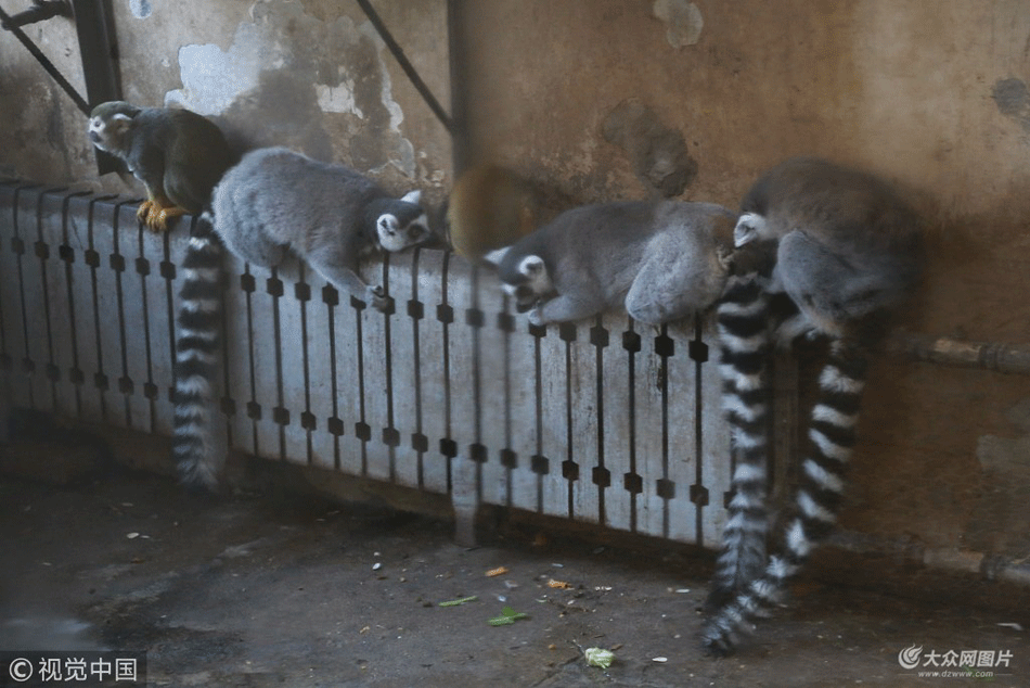 2017年12月19日,氣溫逐漸走低,濟(jì)南動(dòng)物園內(nèi)動(dòng)物團(tuán)抱暖氣片取暖抵御寒冷冬日。