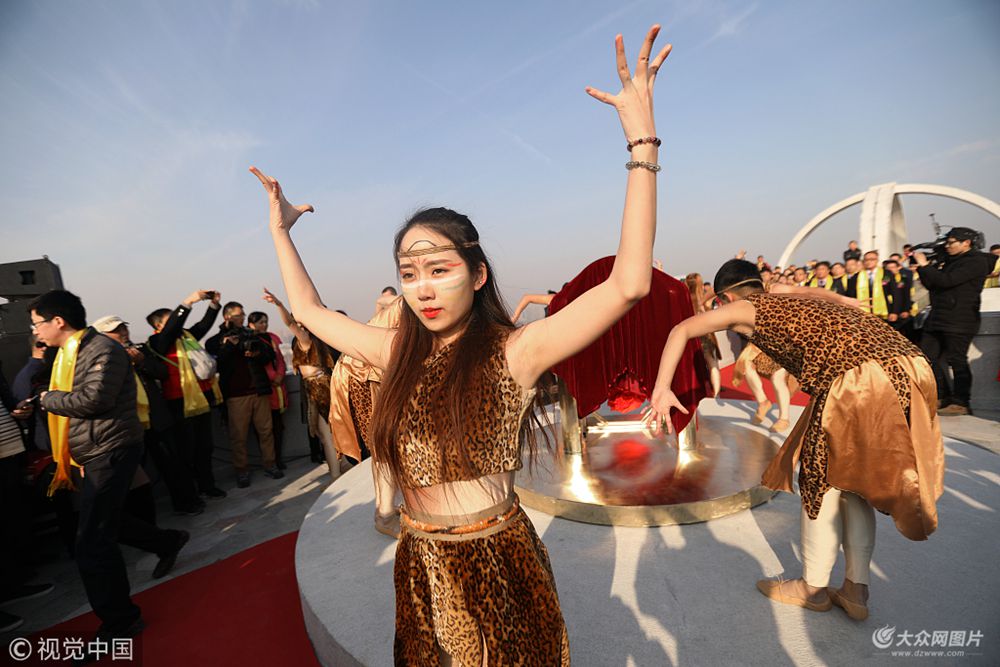2017年12月22日上午,在山東濟南某座小山上,數(shù)名舞蹈演員著衣清涼,模仿遠古時期在山頂大跳祭祀舞蹈,看起來十分“凍”人。