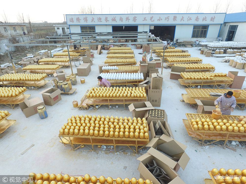 2017年12月27日,山東臨沂,費(fèi)縣的水湖村家家戶(hù)戶(hù)開(kāi)始囤貨了,從十月一到現(xiàn)在金蛋產(chǎn)業(yè)一直處于旺季。特別是馬上元旦了很多商家搞活動(dòng),蛋都做不上賣(mài)。據(jù)悉該村金蛋生意在2013年開(kāi)始進(jìn)入到快速增長(zhǎng)階段,到目前為止,每天有30萬(wàn)枚金蛋從水湖村銷(xiāo)往全國(guó)各地,產(chǎn)值近3億元。