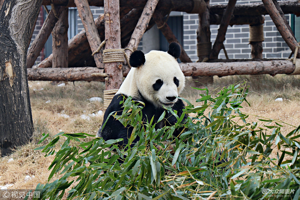 2017年12月29日,山東泰安,大熊貓“武俊”。