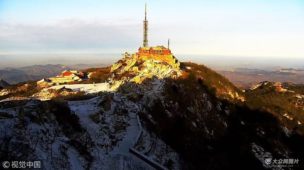 2018年1月5日,泰山頂白雪皚皚。1月4日夜間降下2018年首場雪。