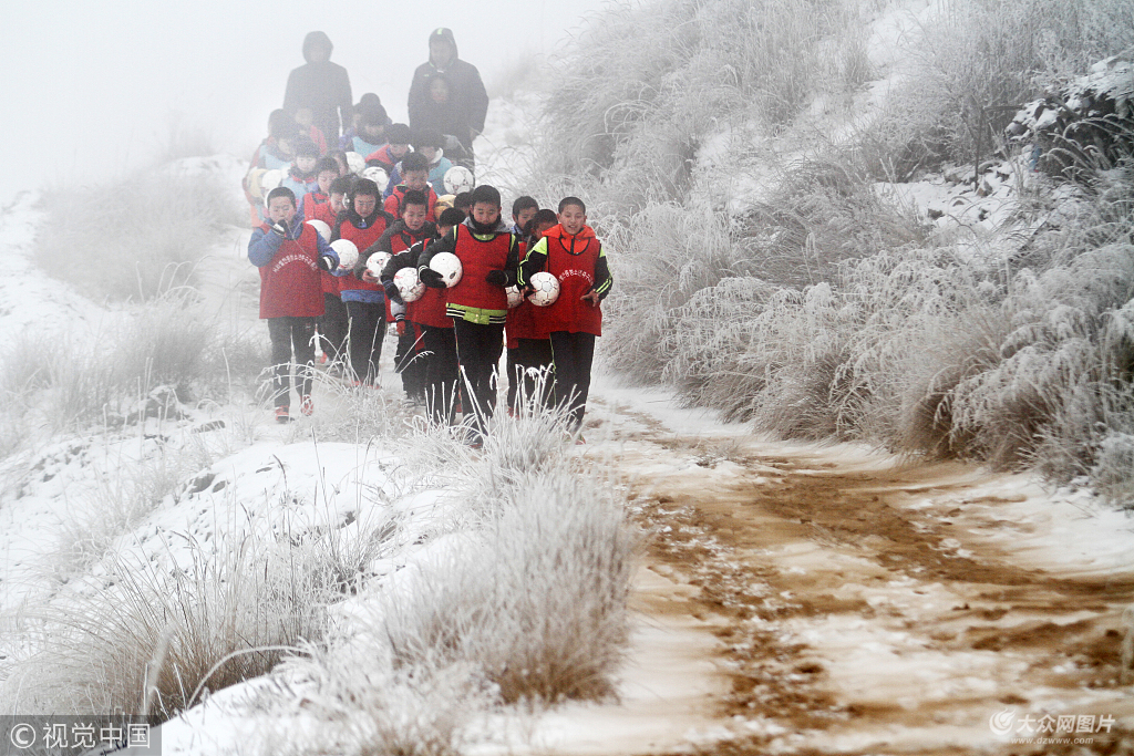 2018年1月4日,蘭州,大山之巔的中連川小學(xué),位于中國黃土高原的蘭州市榆中山區(qū)。即便學(xué)校地處海拔2300米,常年干旱少雨,自然條件惡劣,每年11月過后,北山氣溫最低低至20度,但是孩子們?nèi)匀粓猿置把┘?xùn),“走出大山,以后代表中國隊參加比賽”是他們的夢想。這個山里娃足球隊2017年8月代表甘肅省參加全國U11冠軍杯賽。第一次參加全國性比賽的山里孩子們,常常面對比自己高出一頭的城里孩子,但他們絲毫不膽怯。來自西北大山里的孩子們“一鳴驚人”,在U11年齡組的比賽中獲第7名。