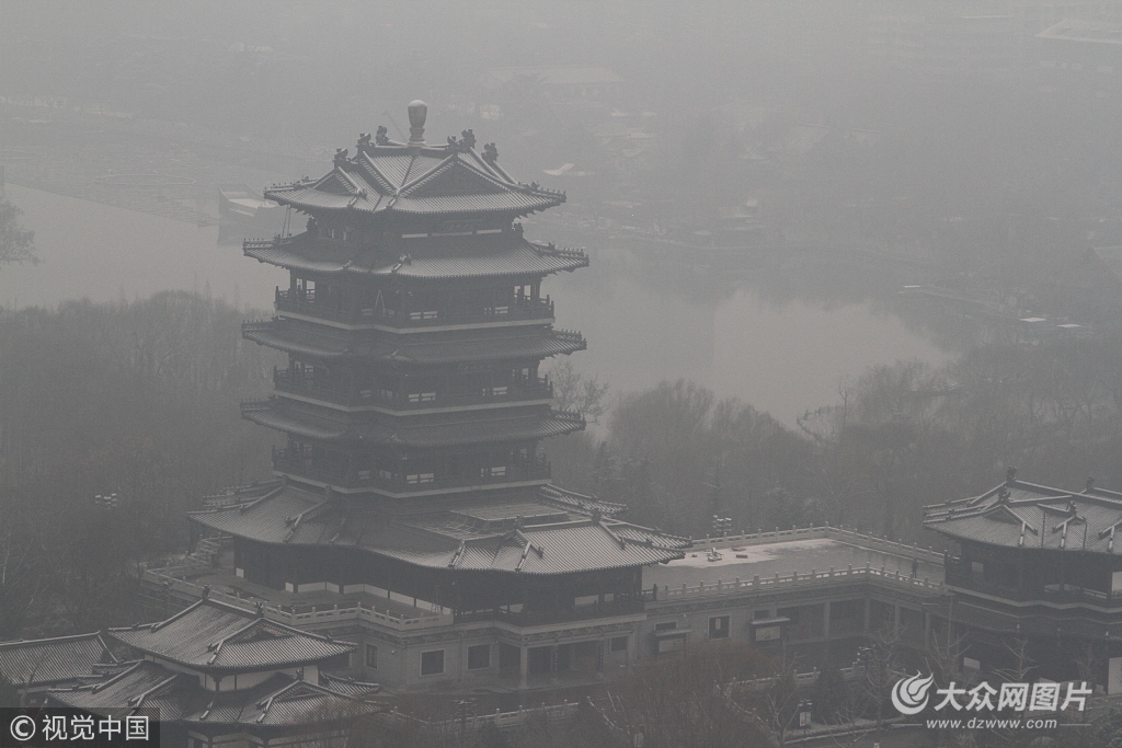 1月7日,濟南迎來降雪,俯瞰山東濟南大明湖風(fēng)景區(qū),銀裝素裹,如同美麗的畫卷一般。