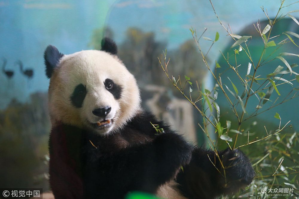 2018年1月7日,濟(jì)南動(dòng)物園,雅吉來濟(jì)南已經(jīng)有百日,已完全適應(yīng)濟(jì)南生活環(huán)境,在寢室中自由自在品味鮮美竹葉。