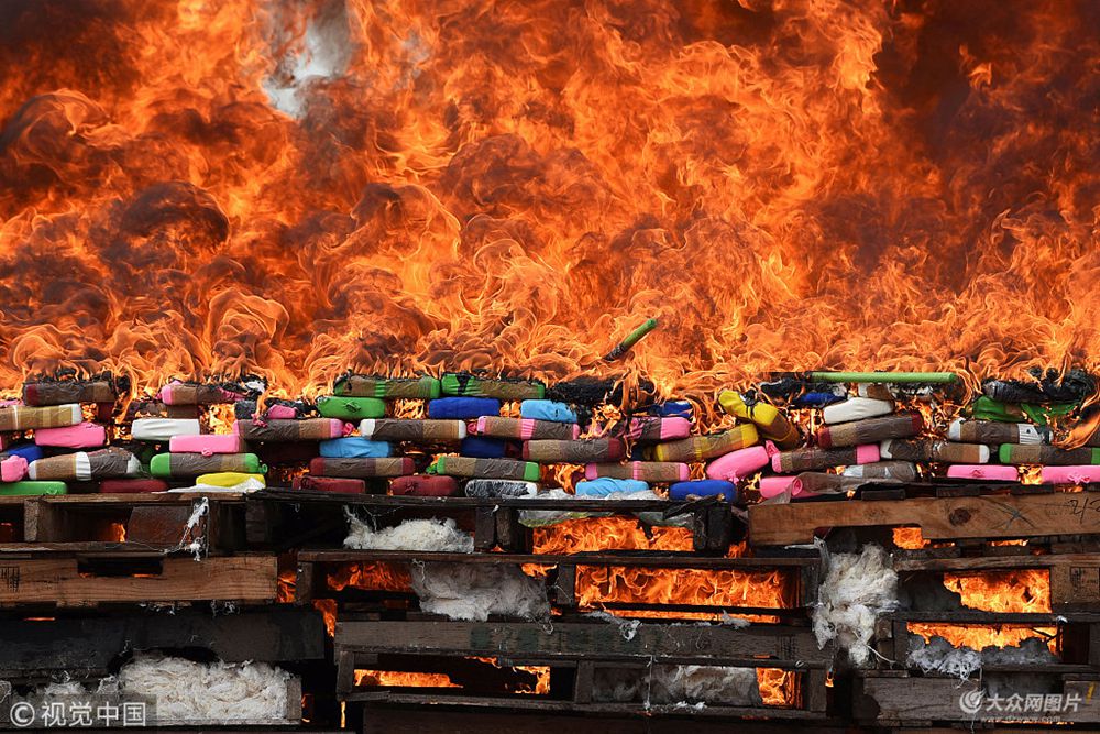 當(dāng)?shù)貢r間2018年1月16日,墨西哥韋拉克魯斯,墨西哥當(dāng)局銷毀了繳獲的超400公斤可卡因,總價值約500萬美元(約合人民幣3220萬元)。