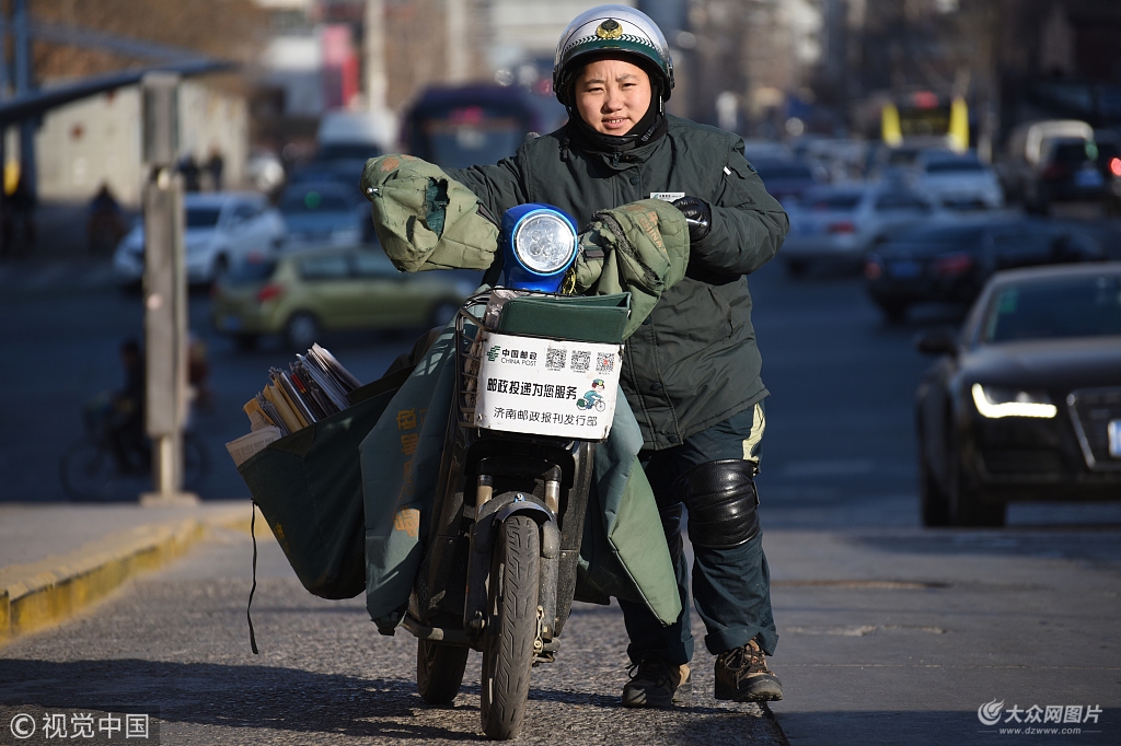 2018年1月9日,“三九”的第一天,濟南晴,-8℃~4℃,北風(fēng)3級。5:30王明梅在濟鋼坐上最早的一班315路公交車,中間換乘K93路車,7:00剛過就到達了中國郵政集團公司濟南市分公司報刊發(fā)行局山師東路投遞部。作為一名投遞員,她第一件事情就是分揀報刊,大約9:00分揀完畢打包裝袋,騎上電動車,載著近100公斤重的報刊,開始一天的投遞工作。出了投遞部大門沿山師東路一路南行,到經(jīng)十路再向東行3公里就到了王明梅的投遞區(qū)域。