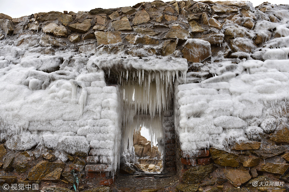 2018年1月27日,山東省日照市山海天旅游度假區(qū)任家臺村礁石公園,海邊的天然礁石上布滿了一層白色的海冰。連續(xù)多日的低溫,致使海水結(jié)冰,附在礁石上,晶瑩剔透,遠(yuǎn)遠(yuǎn)看去,猶如一片片“玉石”。