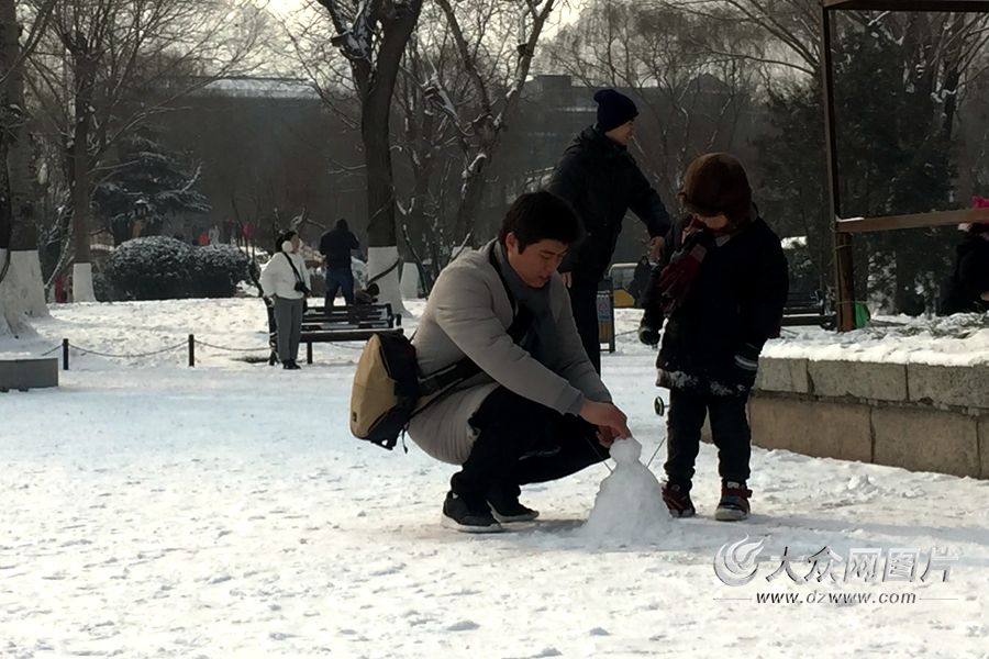 家人帶孩子在雪地里堆雪人 記者 孫博洋攝