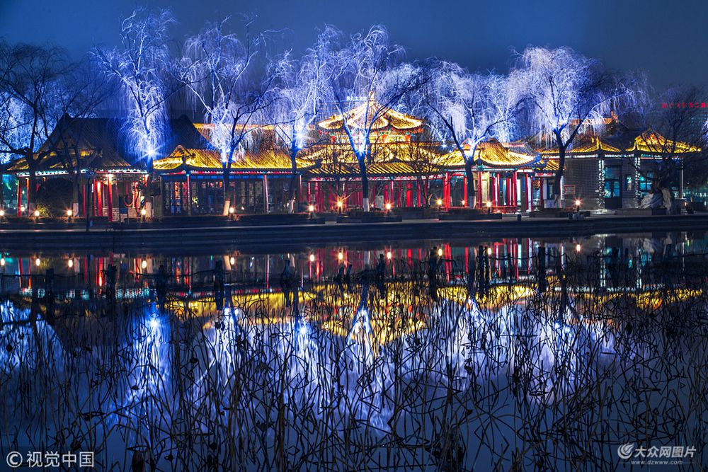 近日,大明湖景區(qū)“亮燈了”,各種燈光紛紛亮起,把大明湖景區(qū)裝扮得璀璨靚麗。