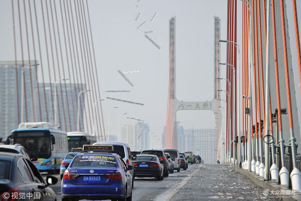 2018年1月29日,江西南昌城里出現(xiàn)了冰凍天氣。1月29日,天氣轉(zhuǎn)晴,南昌八一大橋斜拉索上的冰塊開(kāi)始大面積融化,變成“冰彈”,不定時(shí)地砸向過(guò)往車(chē)輛,短短幾個(gè)小時(shí)時(shí)間,30余輛小車(chē)被砸中。