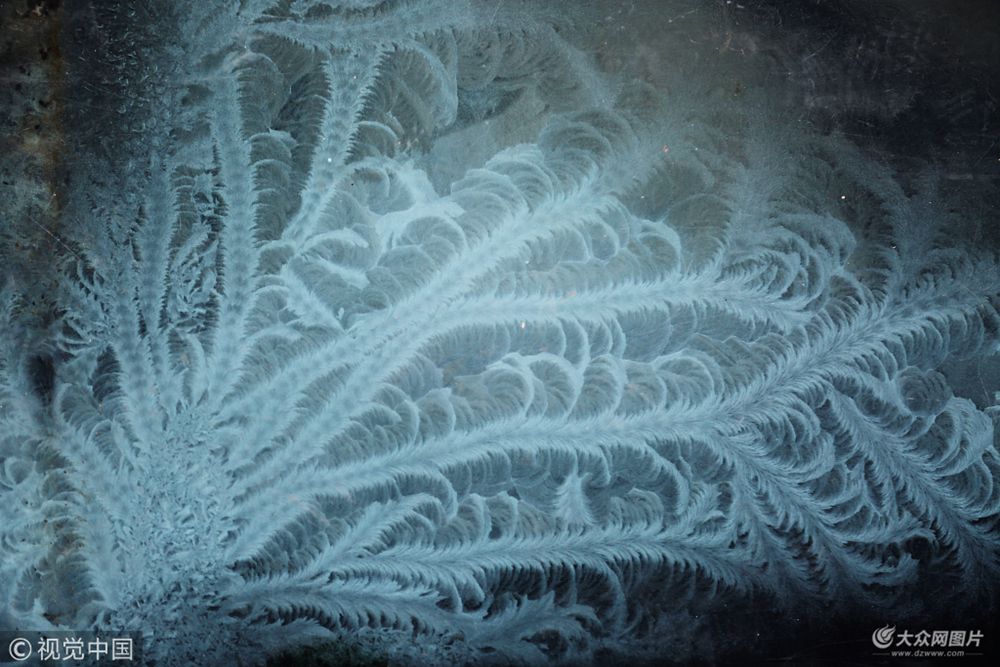 2018年2月4日,在濟(jì)南寬厚里老街巷里,以戶外玻璃櫥窗上出現(xiàn)冰花,如同“奇幻世界”一般,看起來十分漂亮。每個(gè)玻璃上呈現(xiàn)不一樣的抽像圖案,如同自然界藝術(shù)家在玻璃上描繪絕美畫卷。