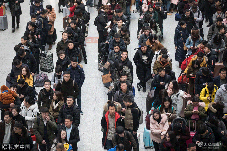 春節(jié)前出行高峰從除夕前一周開始到來,這幾天客流的最高峰來臨。2018年2月12日,在浙江省杭州市的杭州東站內,一眼望去,候車大廳內人山人海,非常壯觀。