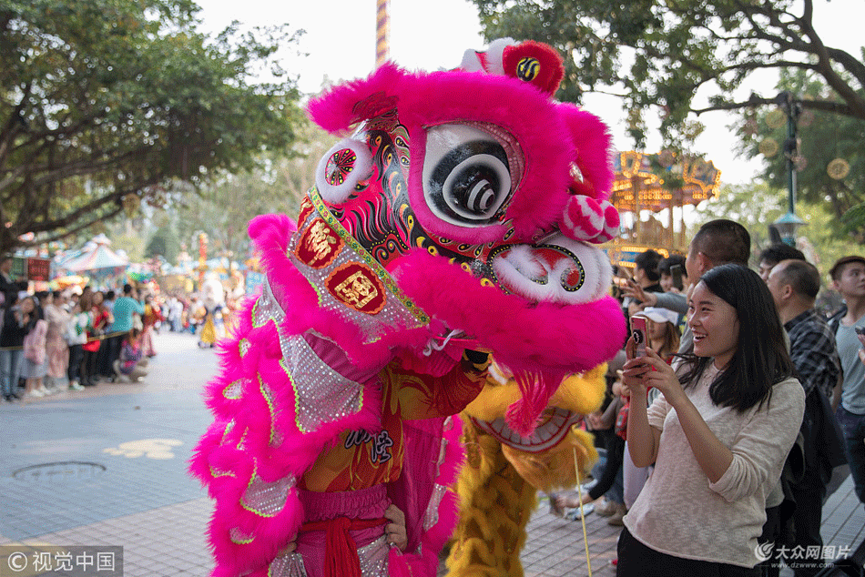 2018年2月16日農(nóng)歷狗年初一,廣州長隆歡樂世界舉行歡樂大巡游。據(jù)悉,春節(jié)期間,園區(qū)舉行一系列新春主題活動,每天上演爵士舞、現(xiàn)代舞、旗袍傘舞、摩爾多瓦裙擺舞等各式舞蹈,以及舞獅、舞龍、陜西盤鼓、說唱、輪滑秀等數(shù)十個節(jié)目,一直持續(xù)到2月25日。 王華(廣東分社)/中新社/視覺中國