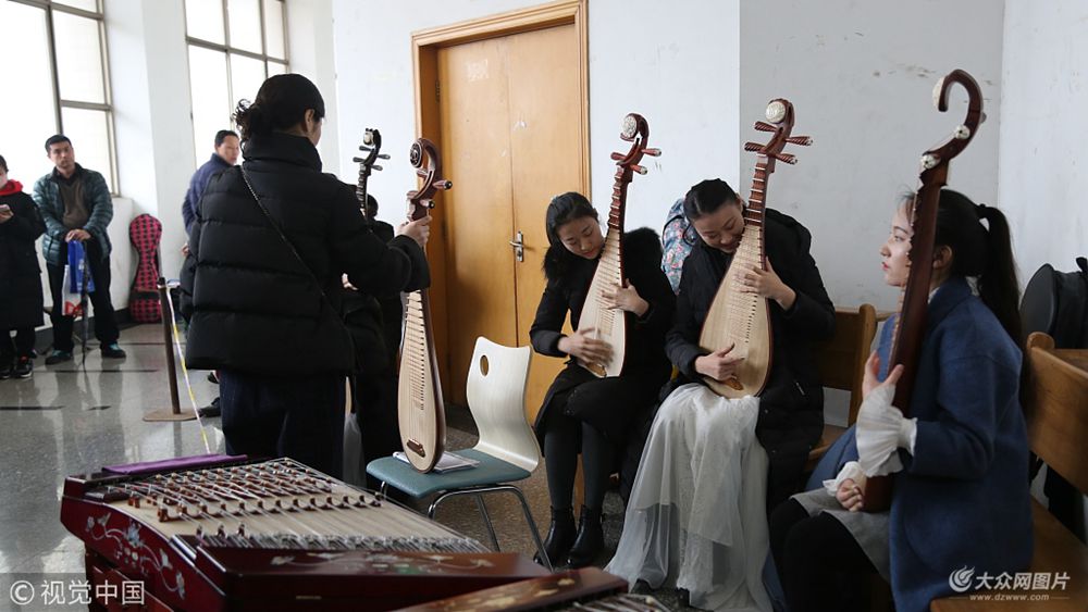 2018年3月4日,濟南,在山東藝術學院音樂學院藝考現(xiàn)場,眾多藝考生在考場外樓道里苦練大提琴、琵琶、古箏、二胡等樂器備戰(zhàn)考試,悠揚的旋律,樓道里秒變“演唱會”。