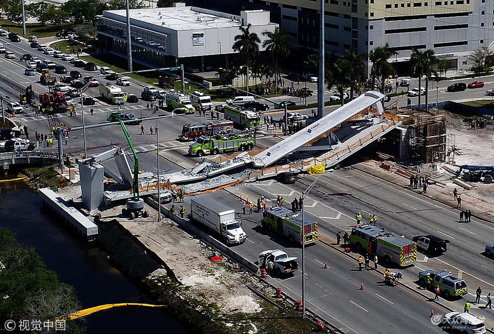 美國(guó)佛羅里達(dá)州邁阿密一條重950噸的新建行人天橋,于當(dāng)?shù)貢r(shí)間3月15日下午突然倒塌,最少8輛途經(jīng)的車輛被壓至變形,另有大批傷者被困,已造成10人死亡。