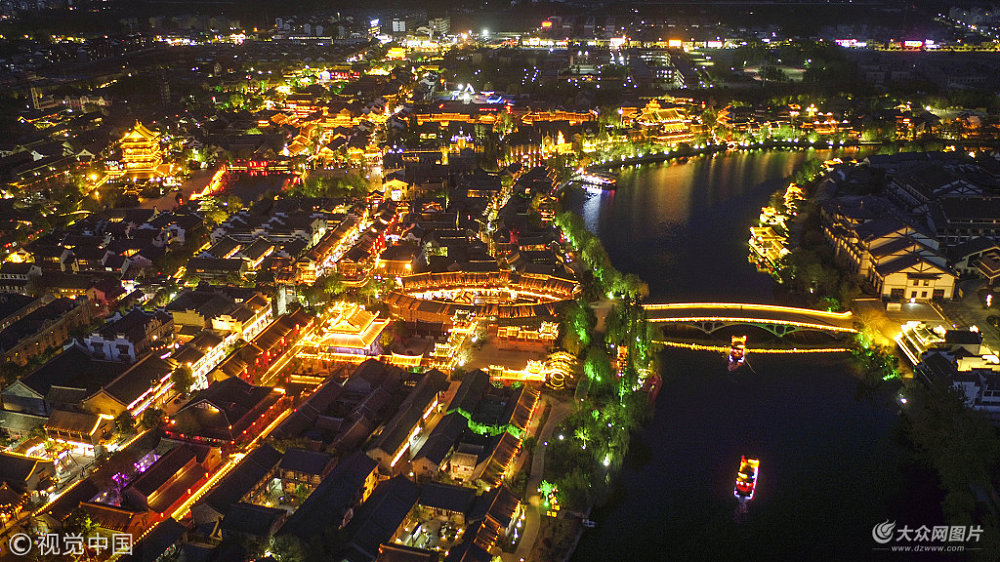 2018年4月9日晚,位于京杭大運河畔的山東臺兒莊古城,華燈初上,星星點點的燈光勾勒出不同風(fēng)格的建筑輪廓,璀璨燈火將古香古色的亭臺樓宇、小橋流水裝扮得絢麗奪目,美輪美奐;一條條掛著紅燈籠的搖櫓船,搖曳在碧波蕩漾的水街水巷里,伴一曲搖櫓姑娘的歌聲中緩緩前行,別有韻味;夜幕下靜謐的古運河與熱鬧非凡的古城商業(yè)相互呼應(yīng),再現(xiàn)了“商賈迤邐,一河漁火,歌聲十里,夜不罷市”繁華盛世。