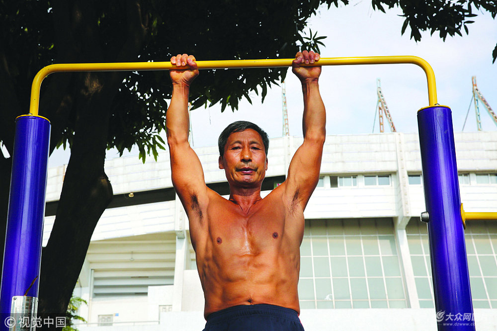 臧旭升,66歲,退休推拿師。11歲開始練業(yè)余體操,至今堅持55年。年輕時可一口氣在單杠上做90個360°大回環(huán),退休后仍堅持至今。雖已年過花甲,卻仍能做出50個大回環(huán)。近幾年,中山有部分市民開始跟隨他鍛煉,大家習(xí)慣稱呼他“臧老師”或者“男神”。夢想把數(shù)十年鍛煉心得形成文字,傳授給更多人。