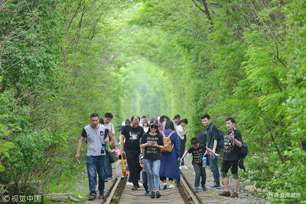 2018年4月30日,南京市江寧區(qū)的網(wǎng)紅地“愛情隧道”迎來大量游客,他們紛紛拿出手機和相機,記錄下這個充滿文藝范兒的小清新火車道。