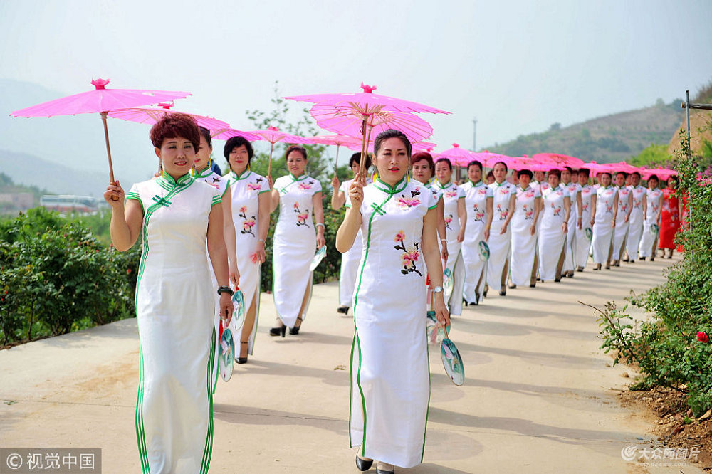 2018年5月13日,母親節(jié),山東青島西海岸新區(qū),一千余名來自山東及江蘇等地的母親,身著鮮艷的旗袍,行走在盛開鮮花的月季大道上,秀出母親的風采和自信。
