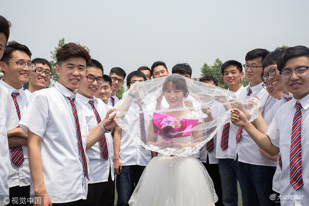 2018年5月26日,山東聊城大學物理科學與信息工程學院電子信息工程 專業(yè)8班中唯一的女生姚越與男生拍攝畢業(yè)照。