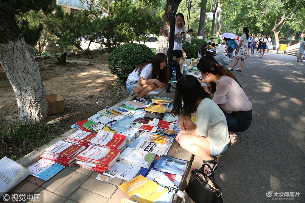 2018年6月2日下午,濟南的一所高校內,大學生們組織起了畢業(yè)季跳蚤市場,將自己的閑置物品出售給需要的人們。現場人氣火爆,在售賣的商品中,書籍、考研資料占比最大,許多名校的考研資料成搶手貨。