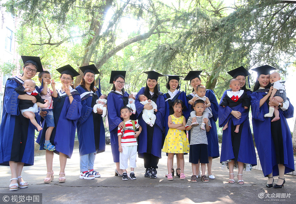 2018年6月10日,湖南省衡陽市南華大學護理學院舉行2018屆畢業(yè)生學位授予典禮,不少畢業(yè)生的孩子和家長都來到現(xiàn)場參加他們的畢業(yè)禮,一起感受他們的榮耀時刻。在本屆20名碩士畢業(yè)生中,有10位媽媽畢業(yè)生,孩子還在肚子里的時候就成為了媽媽的陪讀,有二位媽媽畢業(yè)生還生了二寶。媽媽畢業(yè)生們求學、生娃兩不誤,成為了人人羨慕的人生贏家。在今天的畢業(yè)禮上,這12個寶寶陪讀生也來到畢業(yè)禮現(xiàn)場一起參加媽媽的畢業(yè)禮,場面幸福滿滿、溫馨動人,很好地詮釋了幸福是奮斗出來的時代精神。