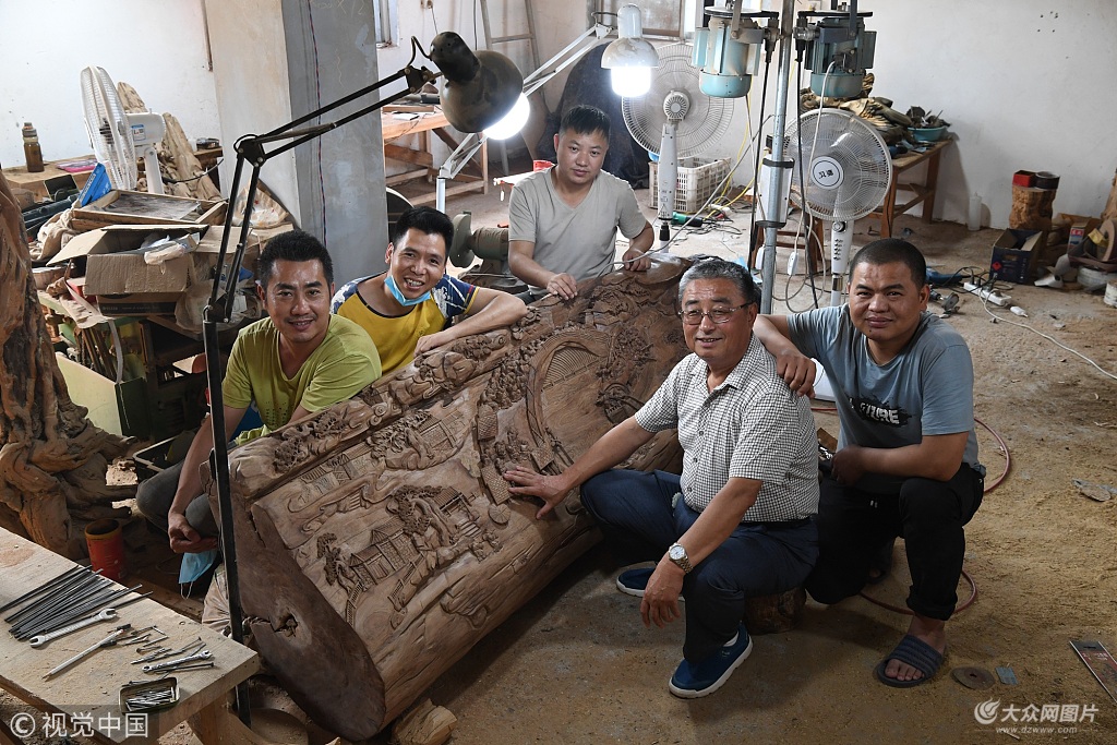 58歲的濟(jì)南老人鄒金勝酷愛“木雕藝術(shù)”,在城南山區(qū)柳埠鎮(zhèn)開起了一家屬于自己的木雕加工廠。最近,鄒金勝和他的團(tuán)隊突發(fā)奇想,共同把中國著名的《清明上河圖》雕刻進(jìn)了木雕作品中。