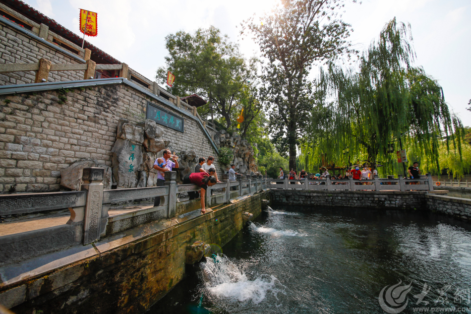 濟南高溫,市區(qū)在黑虎泉乘涼的市民最多。 大眾網(wǎng)記者 畢勝